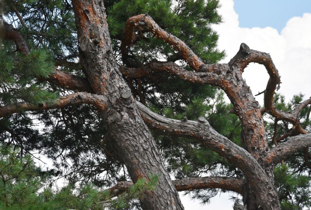 Secondo la mitologia greca, il pino ha origine da Pitis, una bella ninfa che aveva per spasimanti il dio Pan e il dio Borea. Poiché Pitis era innamorata di Pan scelse di legarsi a lui; Borea, il freddo vento del nord, adirato, per vendicarsi soffio così forte da far precipitare Pitis da una scogliera; Gea la dea della terra, avendo pietà della sfortunata ninfa, la trasformò in un albero di pino.