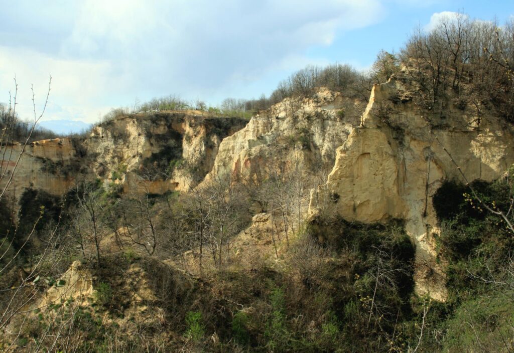 In questi substrati aridi la vegetazione arborea è sostanzialmente costituita dal pino (Pinus silvestris), dalla roverella (Quercus pubescens), che predilige le posizioni più luminose, dal frassino (Fraxinus ornus), copiosamente presente in tutte le cenosi boschive delle Langhe,facilmente riconoscibile per le infiorescenze candide e piumose, dal carpino nero (Ostrya carpinifolia), essenza che massivamente interviene nelle formazioni boschive delle Langhe meridionali, abbondante sui calanchi della valle Bormida di Spigno.