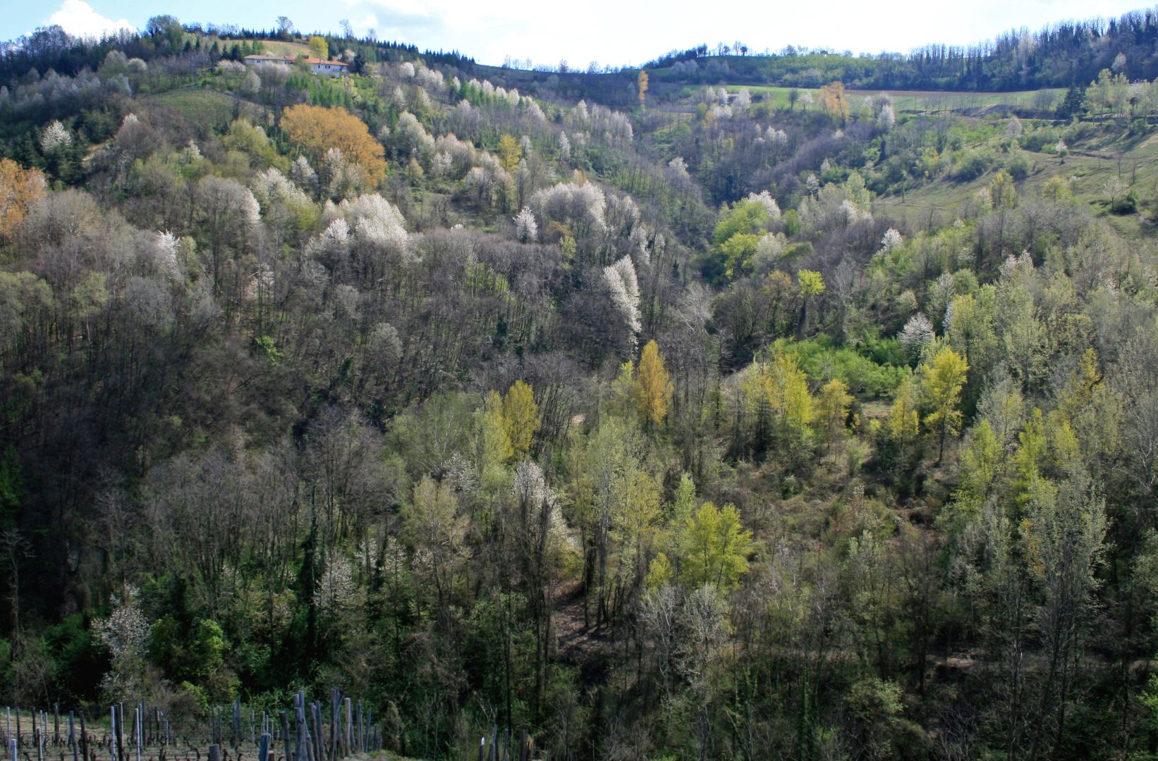 Il manto boscoso che possiamo invece osservare nel Roero e nelle basse Langhe, territori caratterizzati da forte presenza antropica a prevalente vocazione agricola, è composto in gran parte da consorzi vegetali boschivi eterogenei alquanto trasformati. Questi conquistano sempre nuovi spazi, modellando un contesto estraneo a quello originario, con supremazia di specie vegetali non facenti parte del patrimonio naturale locale, di entità avventizie o sinantropiche, che inducono il declino e l’estinzione delle piante autoctone preesistenti sul territorio.
