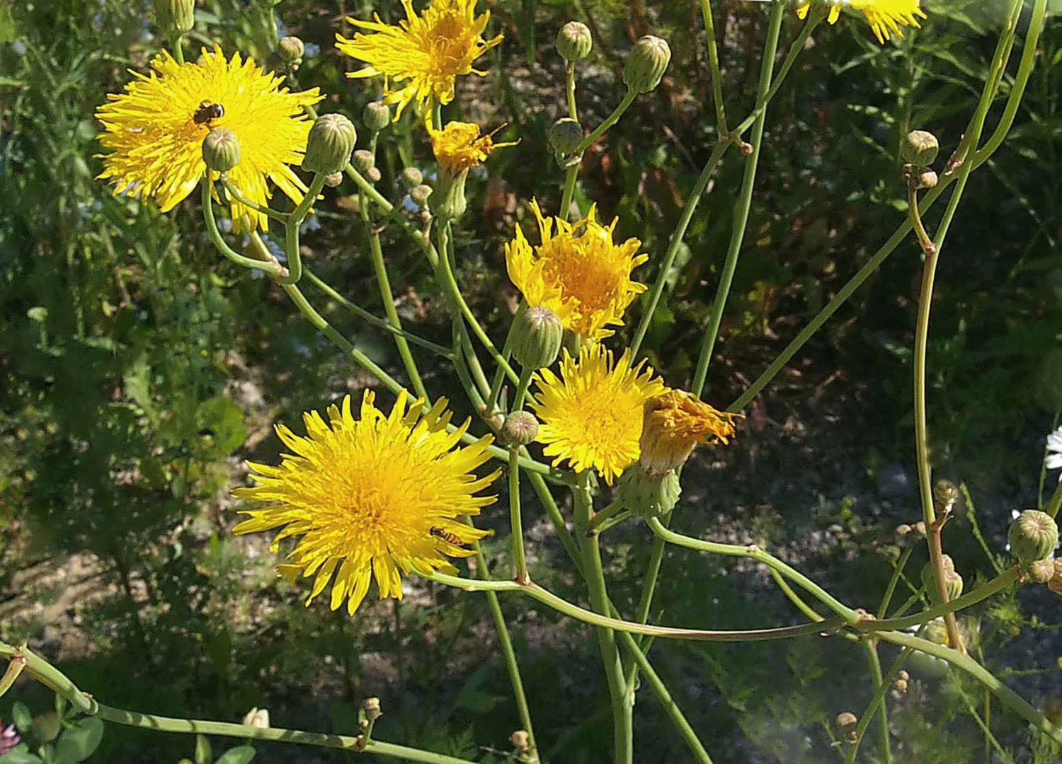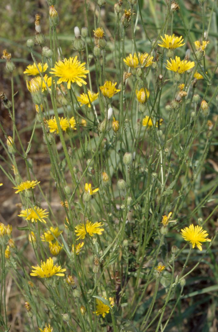 Nelle radure più aride, fanno bella mostra diverse specie di fiordalisi (Centaurea scabiosa, Centaurea nigrescens, Centaurea bracteata), di cardi (Carduus nutans, Cardus litigiosus, Cirsium eriophorum, Cirsium vulgare), di enule (Inula bifrons, Inula salicina, Inula conyza), di artemisia (Artemisia absinthium, Artemisia campestris, Artemisia verlotorum), di lattuga (Lactuca saligna, Lactuca serriola), spesso associate alla pilosella (Hieracium pilosella), alle plantago (Plantago major, Plantago lanceolata), agli scardaccioni (Dispacus fullonum e Dispacus laciniatus), alla perlina gialla (Odontites lutea).