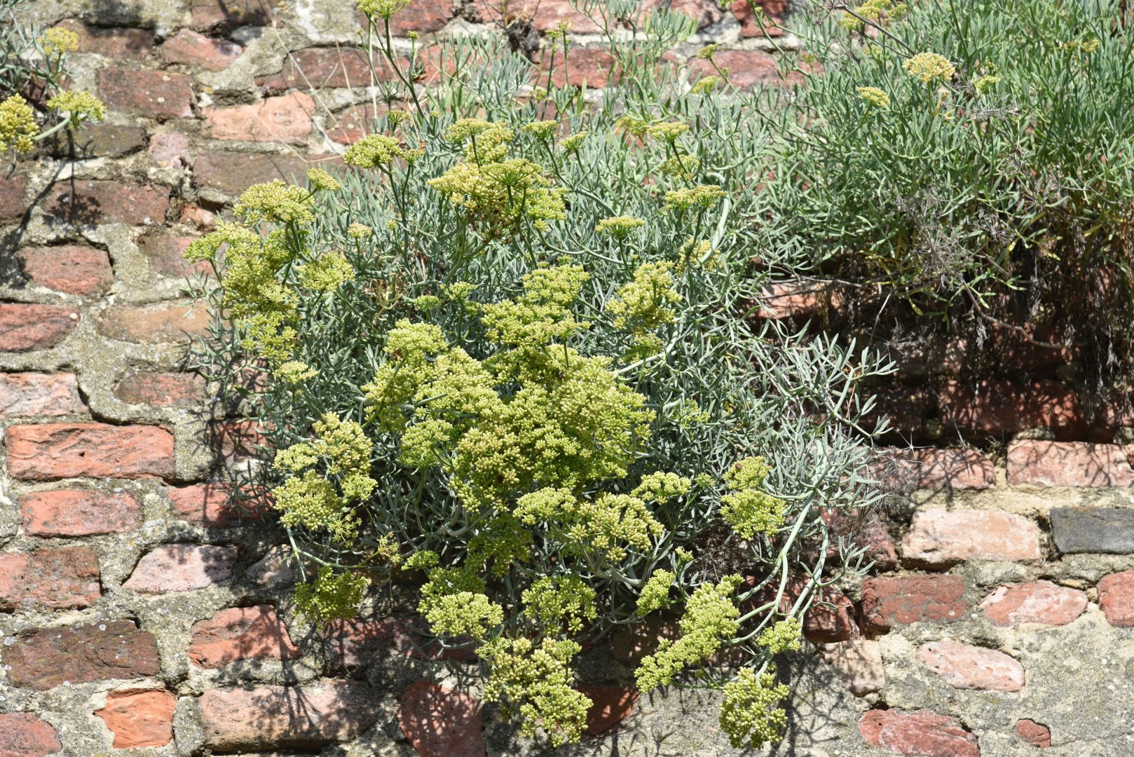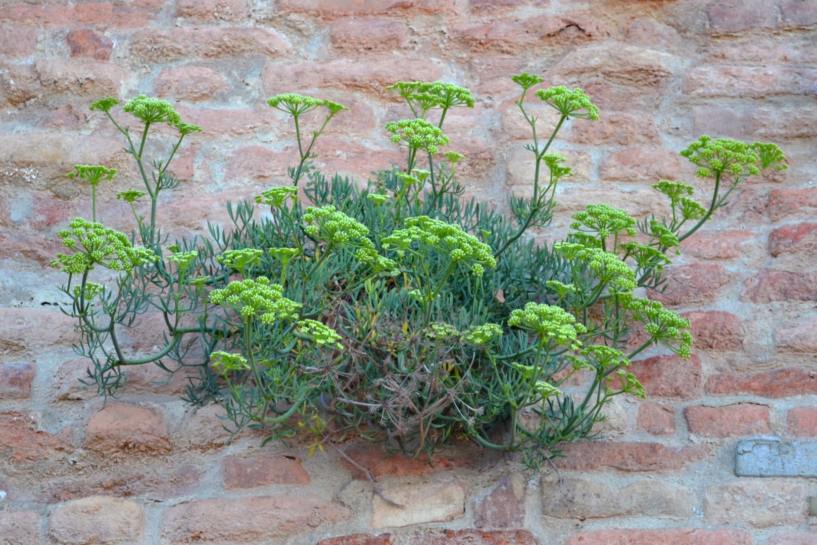 Negli interstizi dei muri in pietra che delimitano gli antichi sentieri, in siti poco esposti all’irradiazione solare, radicano talora copiosamente alcune specie di felci: l’erba ruggine (Ceterach officinarum), l’asplenio ruta di muro (Ruta muraria) e ancora l’asplenio tricomane (Asplenium trichomanes), raramente le pianticelle dell’ombelico di Venere (Umbilicus rupestris), piccole felci originali che sono riuscite ad adattarsi a queste condizioni insolite.