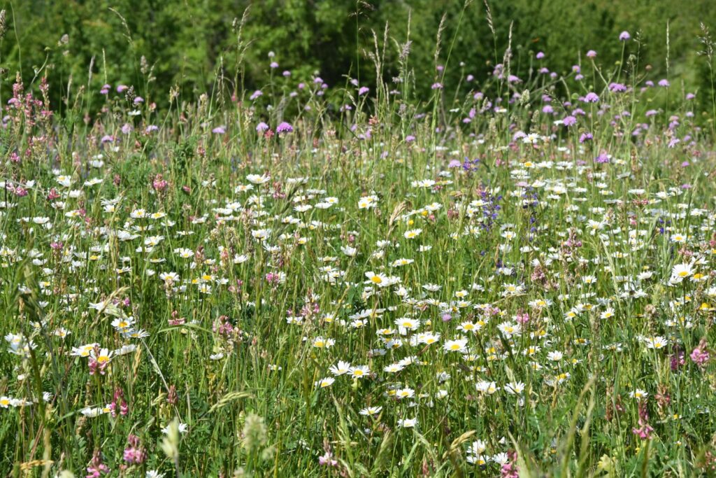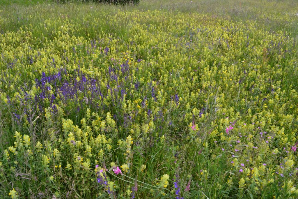 All’inizio dell’estate nelle aree più fresche e meno assolate fanno la loro comparsa la spigarola campestre (Mepampyrum arvense), il romice (Rumex acetosa), le creste di gallo (Rhinanthus minor, Rhinanthus alectorolophus), diverse specie di ombrellifere, (Anthriscus sylvestris, Daucus carota, Pastinaca sativa, Pimpinella major), la radichiella (Crepis vesicaria),la piantaggine (Plantago lanceolata), l’eufrasia (Euphrasia stricta), la salvastrella minore (Sanguisorba minor), l’ambretta comune (Knautia arvensis), la verbena (Verbena officinalis).