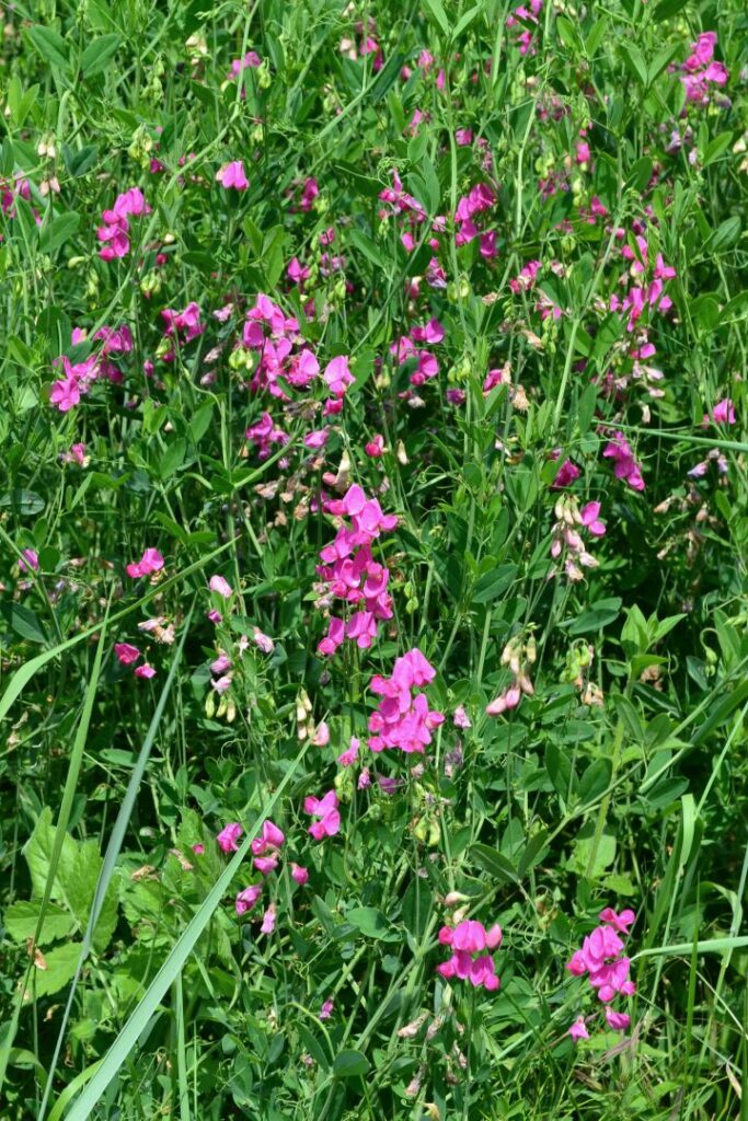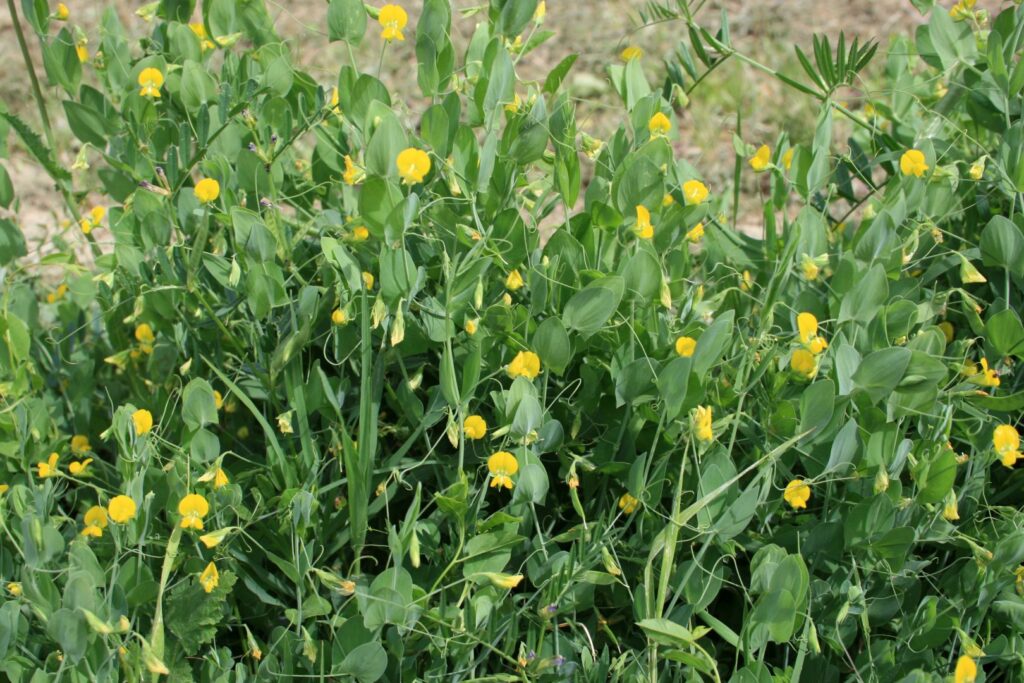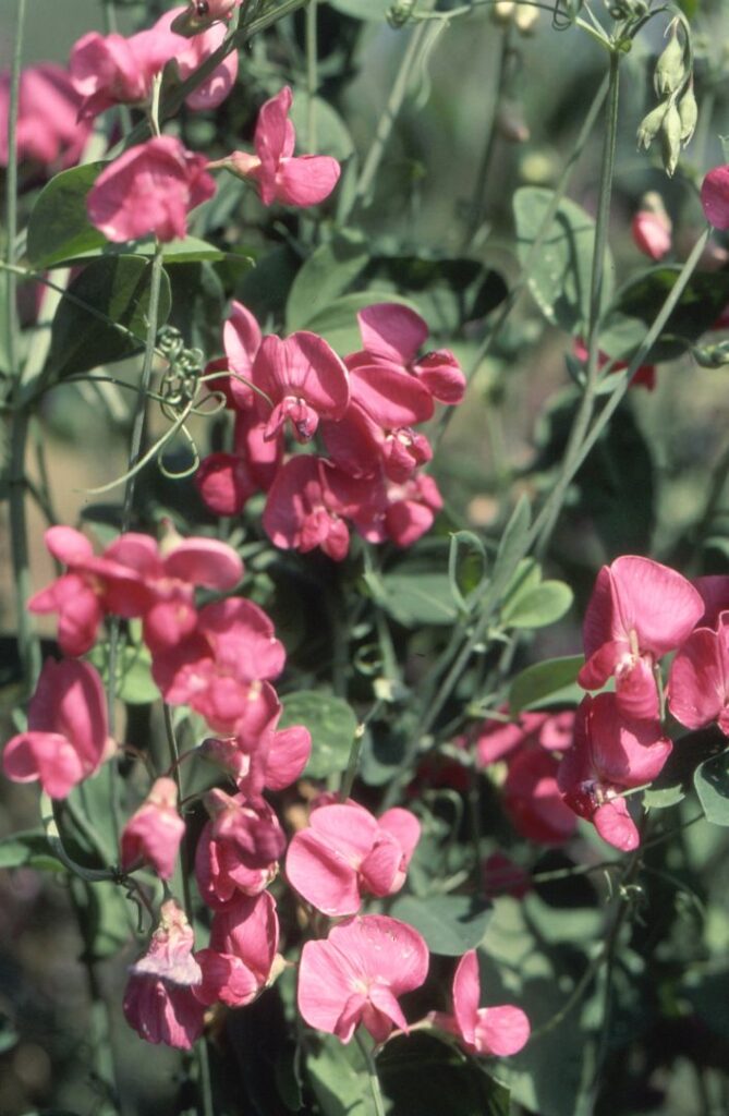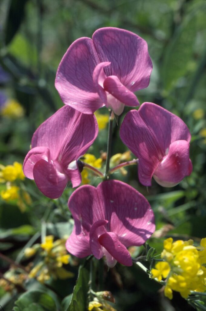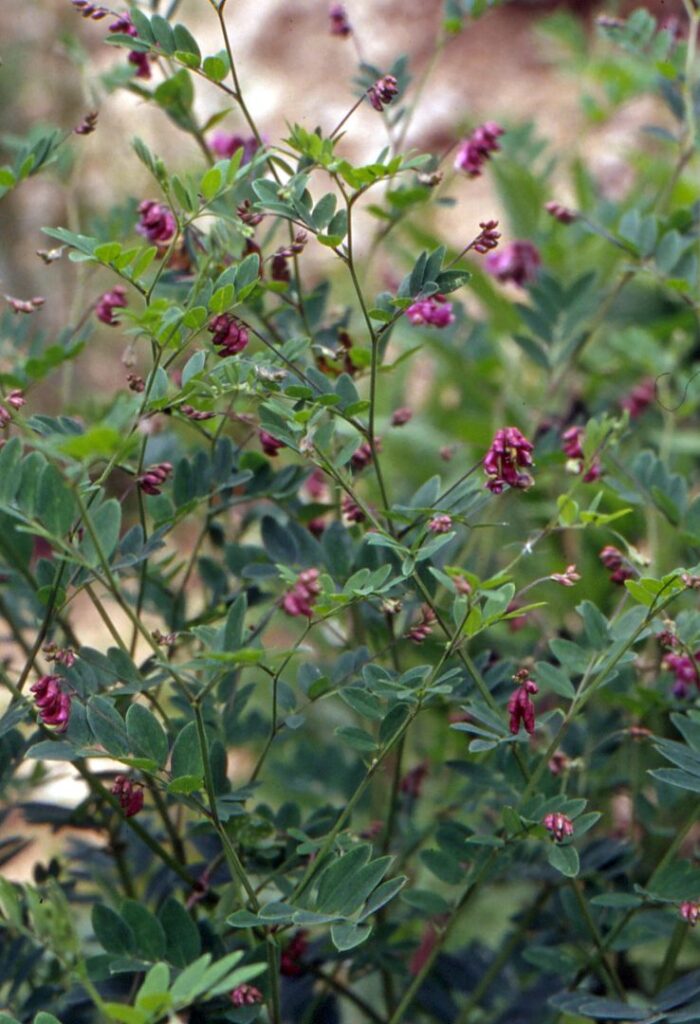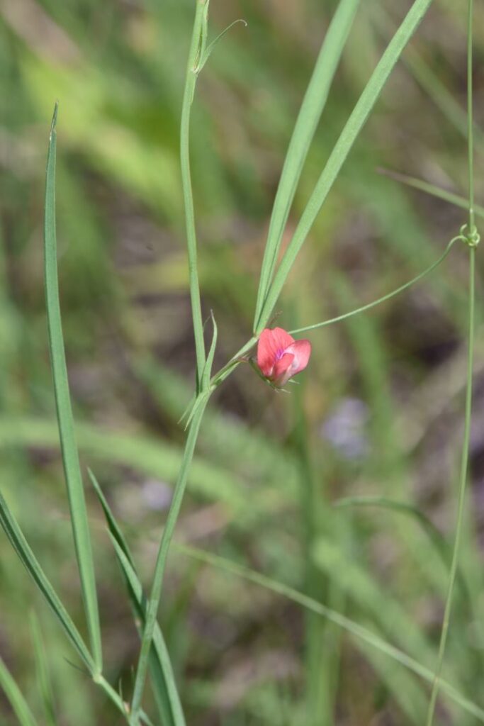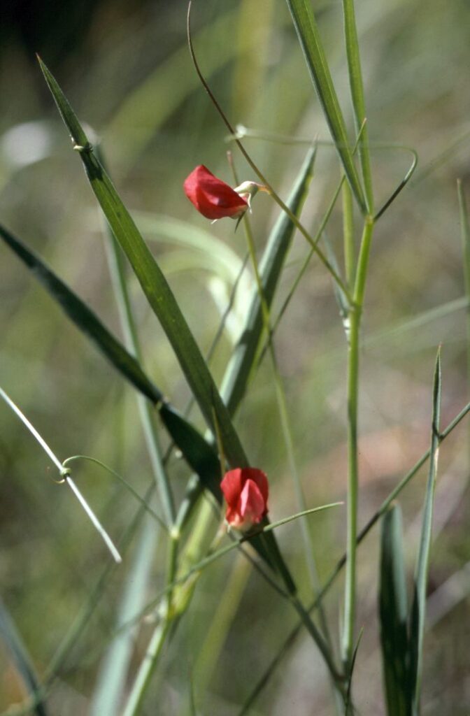 Pianta erbacea annua con fusti eretti, angolosi, senz’ali. Foglie strette lineari, acute. Racemi fiorali con pochi fiori piccoli, di colore rosso; legume lungo 3-5 cm.