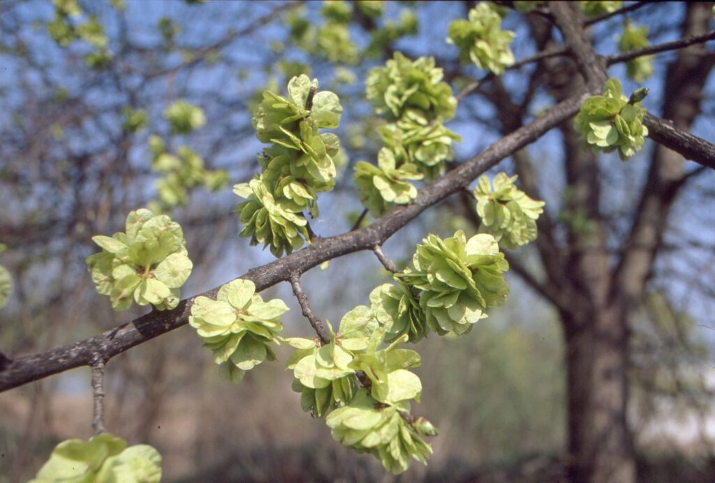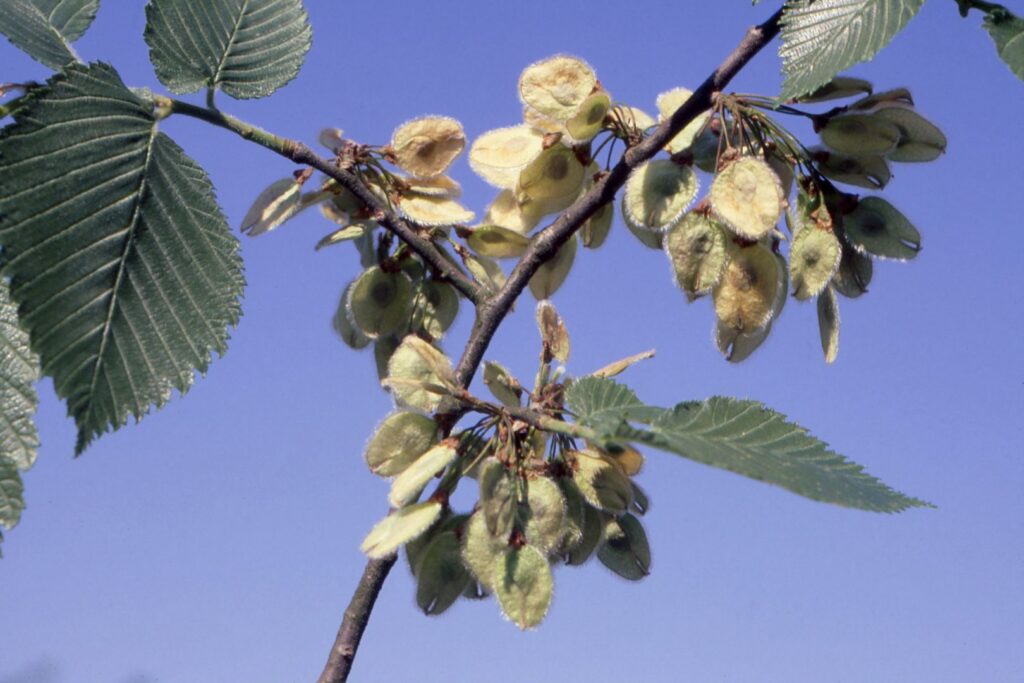 Albero o arbusto simile ad Ulmus minor ma con foglie più larghe, ellittico-acuminate. Samare ovate e cigliate.