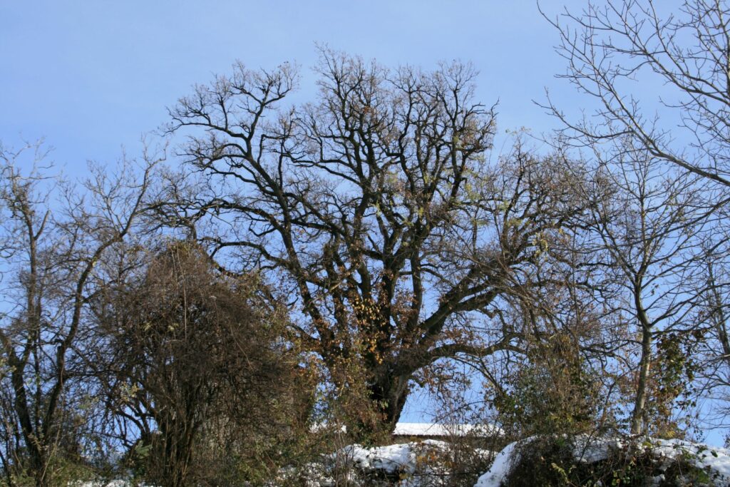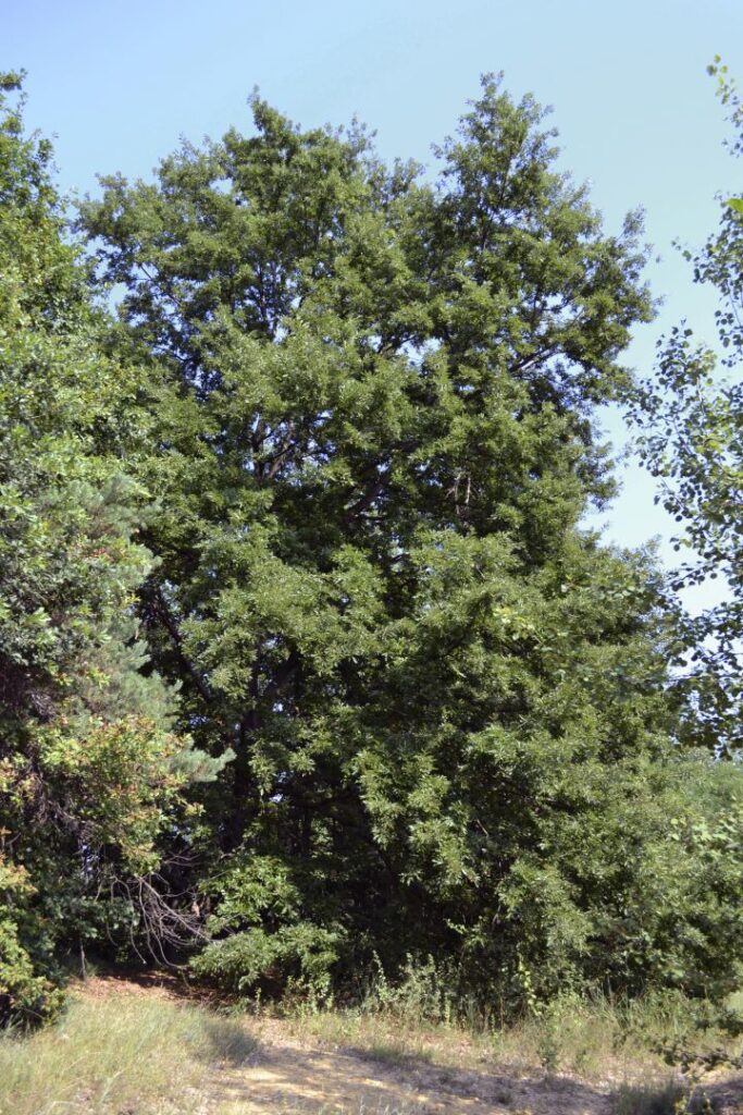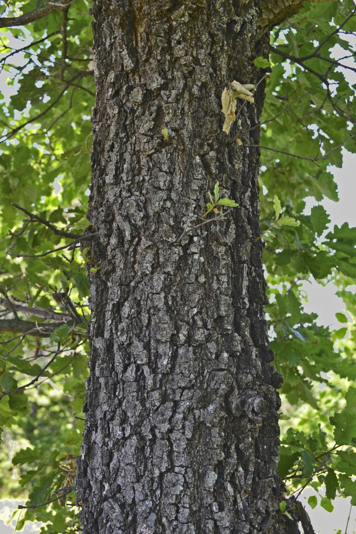 Albero (sp. monoica) di grandi dimensioni. Fusto eretto, ramoso, a chioma ampia; corteccia grigiastra. Foglie peduncolate, lobate, caduche, ma persistenti secche fino alla fine dell’inverno, lamina ovato-ellittica. Ghianda lunga 3-4 cm con cupola ricoprente metà frutto avvolta da squame lineari. Specie rara in Piemonte; nel nostro territorio ha diffusione relativamente frequente.